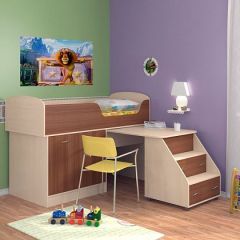 Кровать-чердак "Дюймовочка-2" подойдет детям от 1,5 до 10 лет. Кровать объединяет удобное спальное место, тумбу с полками для хранения вещей, письменный стол и лестницу, в ступеньках которой имеются вместительные ящики. Такой уголок экономит пространство в детской комнате, при этом обеспечивая все необходимые функции.