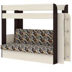 Кровать 2-х ярусная с диваном Карамель 75 (Ромбы) Анкор светлый/Бодега